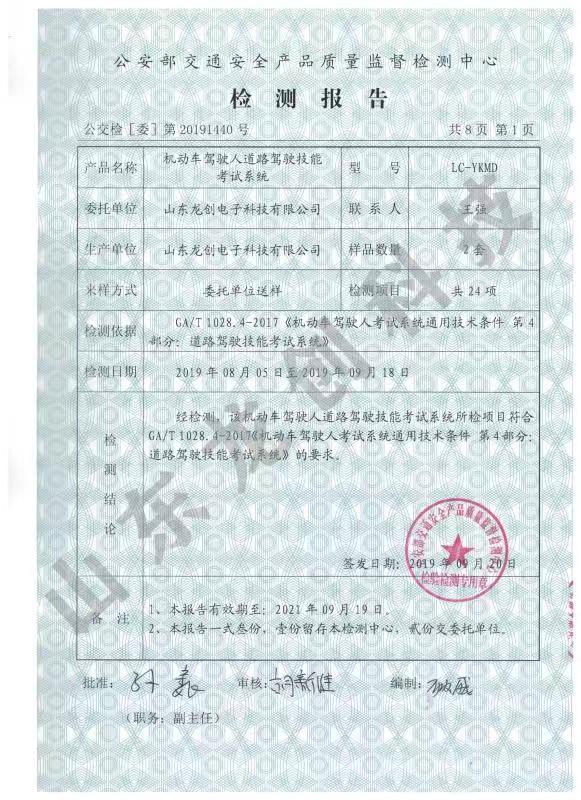 機動車駕駛人道路駕駛技能考試系統檢測報告LC-YKMD2